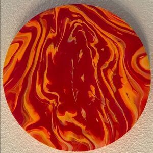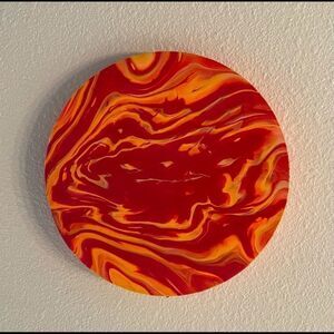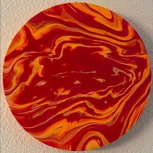 ‘Fury’, an original piece created with acrylic paints (reds, orange, yellow) and sealed with a high gloss varnish.