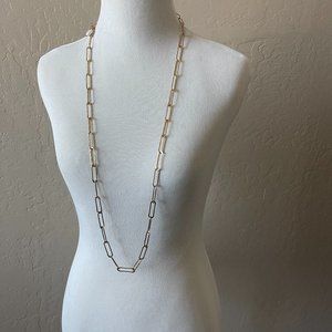 All the rage this season is the link style necklace. This gold version is stunning with adjustable length finished with a fresh water pearl.