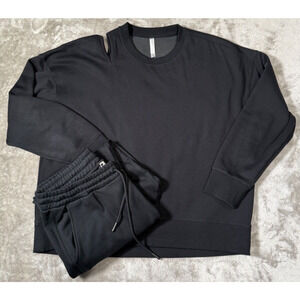 Fabletics Black Fleece Split Neck Sweatshirt XL and Matching Sweatpants L Set