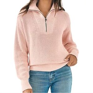 Stay cozy and stylish with this elegant pink half-zip sweater. Perfect for layering and adding a touch of color to your wardrobe.