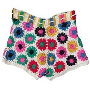 Farm Rio Multi Circles Crochet Shorts - Handmade Booty Short sz Large