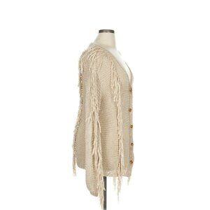 Farm Rio Sand Stripes Fringes Knit Cardigan Sz XL Button Up Boho Knitted NWT