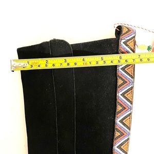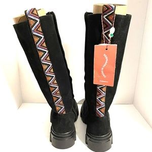 Farm Rio Tall Boot Lug Sole Black Tribal Ribbon MSRP $285 NWOT Sz 7 Vegan Suede