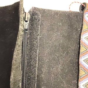 So cute but never wore, just removed tags. Farm Rio lug sole chunky black vegan suede like knee length boots with tribal ribbon detail at back. If you love a lug sole these are unique and well made. Size 7. Enjoy!