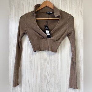 Fashion Nova Phoebe Washed Top Mocha SIZE M NWT