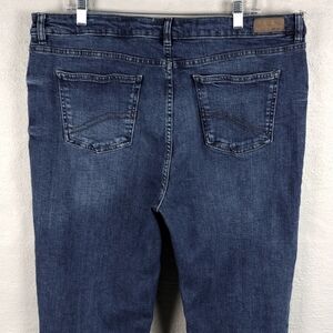 Fat Face UK Women Chesham Girlfriend Women's Plus Blue Dark Wash Five Pocket Button Zipper Front Closure High Rise Straight Leg Denim Jeans. 99% Cotton, 1% Elastane. Belt Loops. Embroidered Back Pockets. Back Waistband Log Patch Wear. Measurements approx. Flat Lay. Waist: 18.5, Rise: 12, Hips: 22.5, Inseam: 27.5, Hem Opening: 8". Size 18R UK/US 14. Color May Vary Due To Lighting.