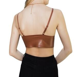 Faux Leather Longline Bralette Top Size L Dark Brown NWT