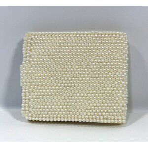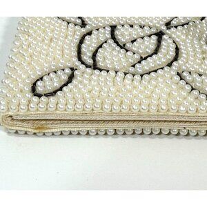 Petite vintage faux pearl-beaded wallet with black beading.