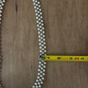 This stunning faux pearl necklace features a beautiful gold-toned chain holding 3 faux pearls side by side all the way around. This necklace blends Regency, Victorian, and Art Deco styles. Its avant-garde design makes it a unique statement piece for any occasion. The necklace exudes elegance and sophistication, perfect for adding a touch of vintage glamour to your outfit. The faux pearls are carefully crafted to resemble genuine pearls, offering a luxurious look without the high cost.
