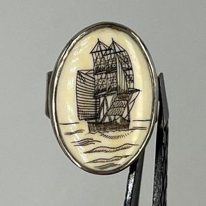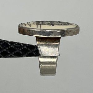 Faux Scrimshaw Silver Women's Ring with Whaling Boat Image - Size 8.5