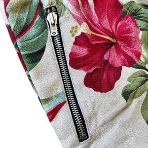 Rare tropical Hawaiian red hibiscus flower print from the 2017 collaboration between Fear of God and Jungle Girl. Men’s size XL in excellent condition. Zippered front pockets and back flap pockets. Drop crotch, elastic tie waistband. Mesh lined interior. Made in USA. Stock photos shown for fit reference, not pattern.
