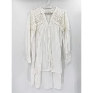 Feather Bone Anthropologie Lucille White Long High-Low Crochet Button Front Top