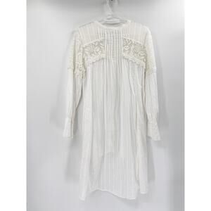 Feel light and free in this airy and boho Lucille top from Feather Bone by Anthropologie. This long sleeve top features a long high-low tunic length that is very versatile in how many ways it can be worn, a button up front closure, notched neckline, pin-tuck pleating, and beautiful crochet inserts.
