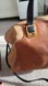 Elegant Fendi satchel in tan and brown. Features sleek black handles and gold hardware. Perfect for any occasion.