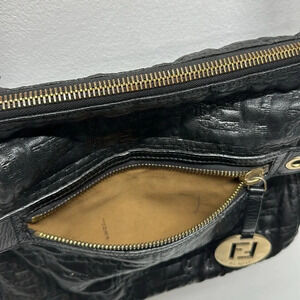 Fendi FF Quilted Coated Canvas Embossed Crossbody Bag Purse Designer Black Gold