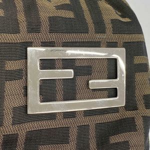 Fendi Handbag. Zucca. Nylon Canvas. Brown. Silver Hardware Women's