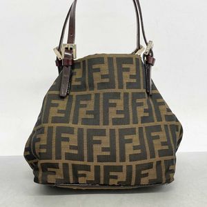 Fendi Handbag Zucca Nylon Canvas Brown Silver Hardware Pre-owned Women's
