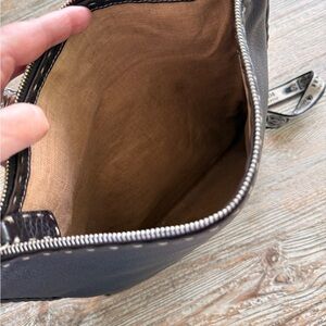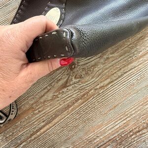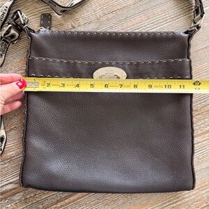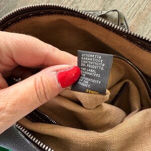 Sophisticated Italian Fendi messenger bag in dark brown leather. Features signature logo detail. Ideal for stylish daily use. intentional retro stitching on high end leather with thick linen type interior. Interior has some staining and needs additional cleaning. Cannot see staining from the outside of the bag. This is simply an amazing bag that coordinates with every outfit and is also a collector’s item. Strap and leather in great condition for vintage approx 2009 bag. See hologram and ID number on leather tag sewn into lining. This is a great way to start or add to your luxury handbag collection!