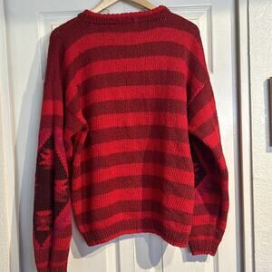 Fenn Wright & Manson Red Pink Striped Southwest 90s Sweater