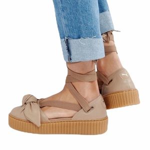 Fenty Puma By Rihanna Leather Bow Creeper Platform Sandals