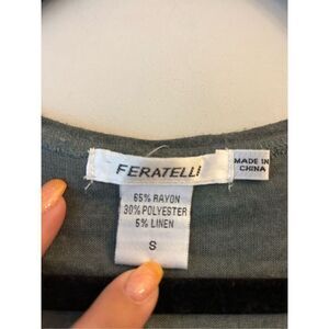 Feratelli embroidered crochet boho top sz S linen blend Lagenlook mixed media