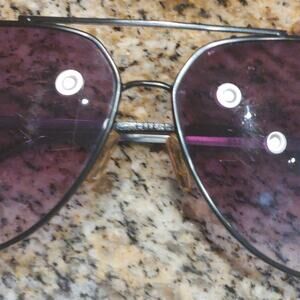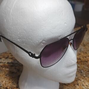 Ferragamo 511 Black Metal Aviator Sunglasses Purple Solid Color Lens
