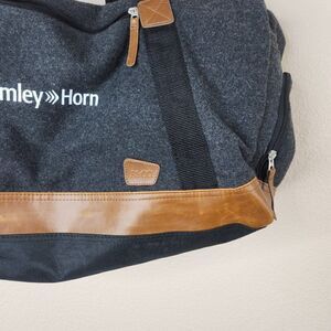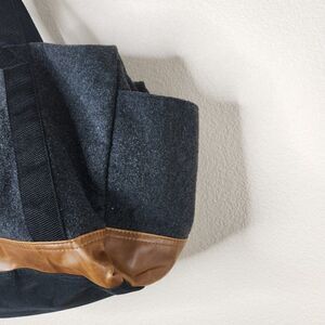 The material and lining are unknown, and the bag is pre-owned but in excellent condition. Perfect for men on-the-go, this Field & Co. fleece duffel bag is a stylish and practical accessory.