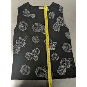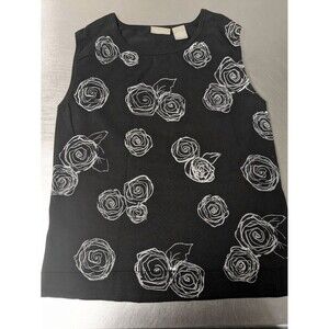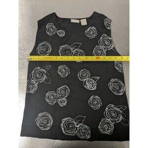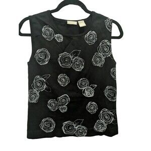Field gear Women's 2 Piece Business Casual Cardigan Twin Set Black and White Rose Floral Pattern Button Up Sweater and Tank Size M Pre-owned in very good condition