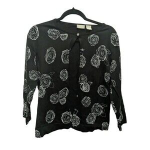 Field gear Women 2 Piece Black and White Rose Floral Pattern Button Up Sweater a