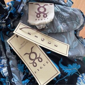 Figue Gabriella Floral-Print Paradise Batik Blue Viscose Tiered Dress NWT Size S