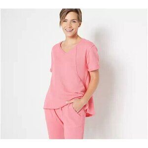 Fit 4 All by Carrie Wightman V-Neck Top with Pockets Papaya Pink Size 4X A398763