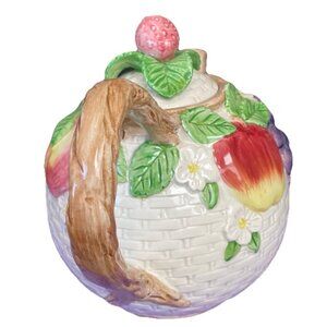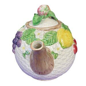 Fitz Floyd Fruit Teapot Basket Weave 42 oz Vintage 1990 Cottagecore Farm MCM