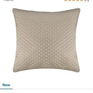 Five Queens Court Zarah Satin Damask Embroidered Euro Pillow Sham, Taupe