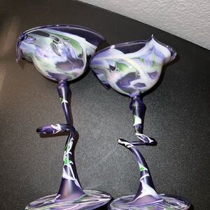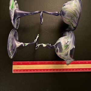 Flame Glow Penco Hand Blown Delicate Candle Holders Art Glass Purple Pair of 2.