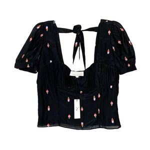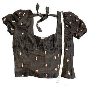 Fleur Du Mal Ice Cream Embroidery Top Blouse Bustier Tie Back Women’s Size Large