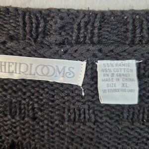 Heirlooms Floral Knit Cardigan Sweater XL Black Rose Pattern Button Front VTG Look