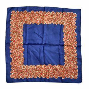 Floral Square Head Scarf Synthetic Navy Blue Red Gold Retro Vintage