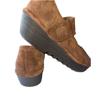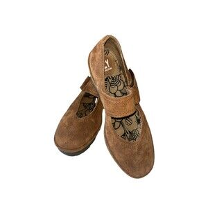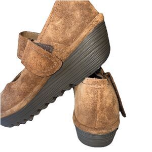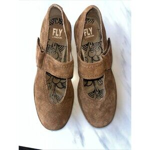 Fly London Brown Suede Wedge Shoes SZ 38 / 8 Mary Jane Strap Comfort Wedge Heels