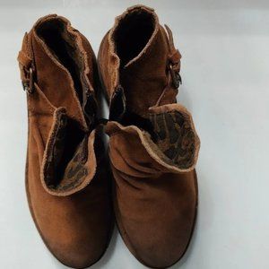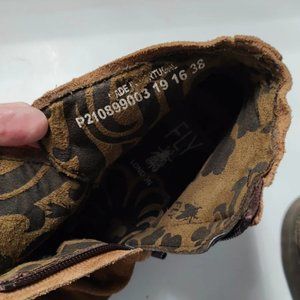 Fly London Neba Bootie Ankle Boot Buckle Suede Distressed Size US 7.5 / EU 38