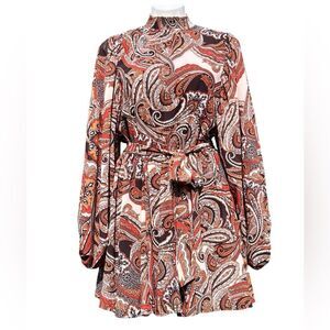 Flying Tomato Paisley Belted Long Sleeve Keyhole Mini Dress Size Medium New