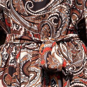 Flying Tomato Paisley Print Belted Long Sleeve Keyhole Mini Dress