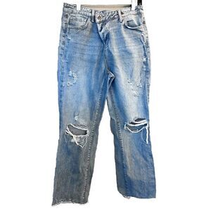 Flying Monkey Button Fly Distressed Straight Women's size 27 Blue Denim Jeans