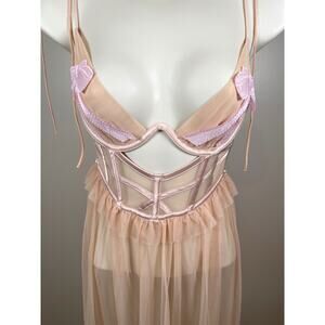 For Love & Lemons Akeria Sequin Bow Cutout Sheer Pink Maxi Slip Dress Size XXS