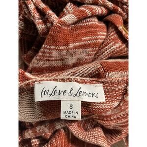 For Love & Lemons 'Isabela' Brown Midi Dress Size S: unlined, pull-on styling with attached back tie closure, front button closure, twist detail at bust with cut-out design, adjustable shoulder straps, soft knit fabric with side seam slit.