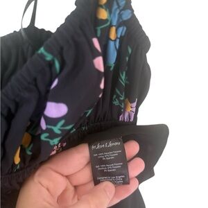Breezy mini dress from For Love & Lemons topped with an allover daisy chain print. Featuring a feminine shirred bodice, smocked-banded waist and adjustable shoulder ties. Fully lined. Content + Care. 100% Polyester Machine Wash