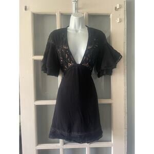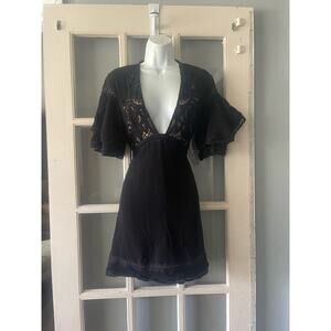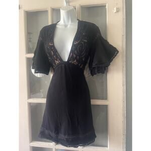 For Love and Lemons Carmine Black Lace Ruffle Sleeve Cami Mini Dress Size XS.
