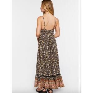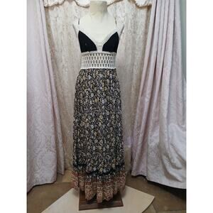 Forever 21 Crochet Floral Sundress L Black Babydoll Maxi Festival Hippie Gypsy