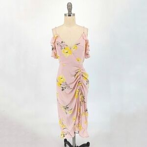 Forever 21 Floral Ruffle Midi Dress Pink S