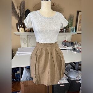 Dress with Stylish gray cuffed top with a beige pleated skirt with pockets. Can worn with a belt ( see belt loops ) no belt included. Perfect for casual outings. Comfortable and chic.