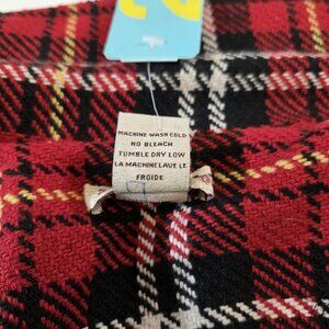Forever 21 Wool Blend Plaid Button Up Pea Coat Large Red Black White Gold NWT
